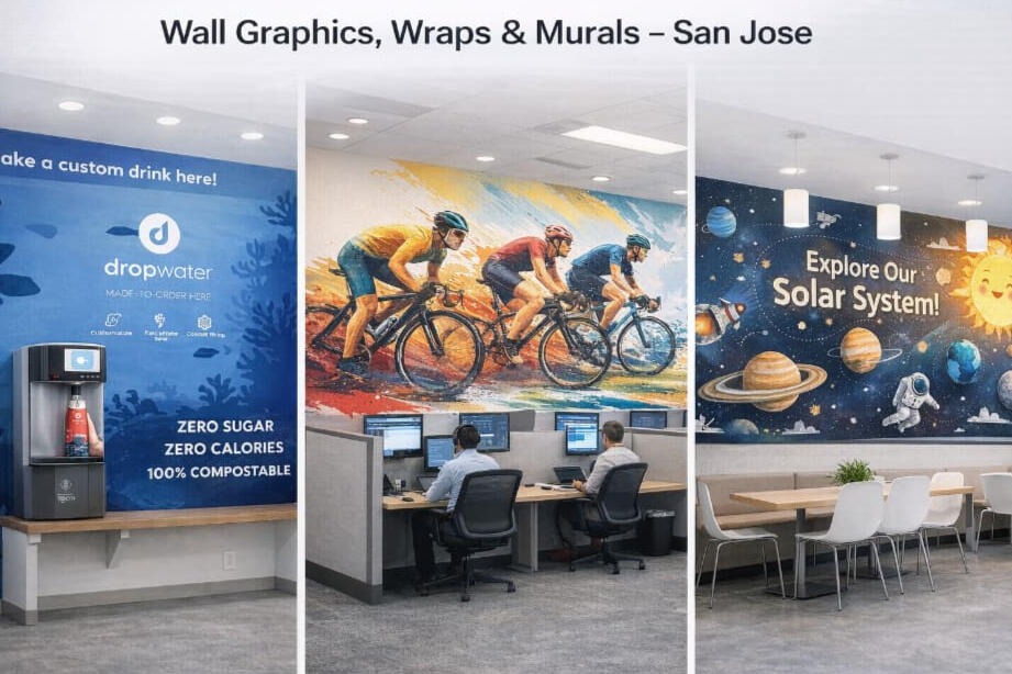 Wall graphics and murals transform blank walls into branded environments. From clean vinyl lettering to full wall wraps, we create custom interior graphics that enhance offices, retail spaces, restaurants, and commercial buildings throughout San Jose.